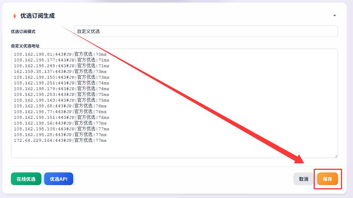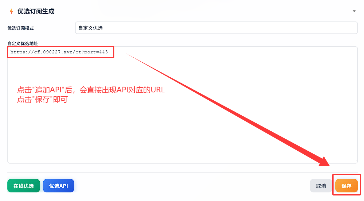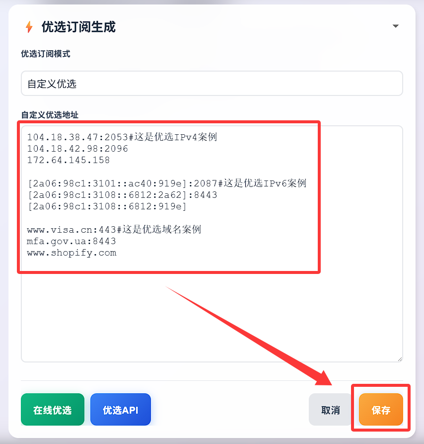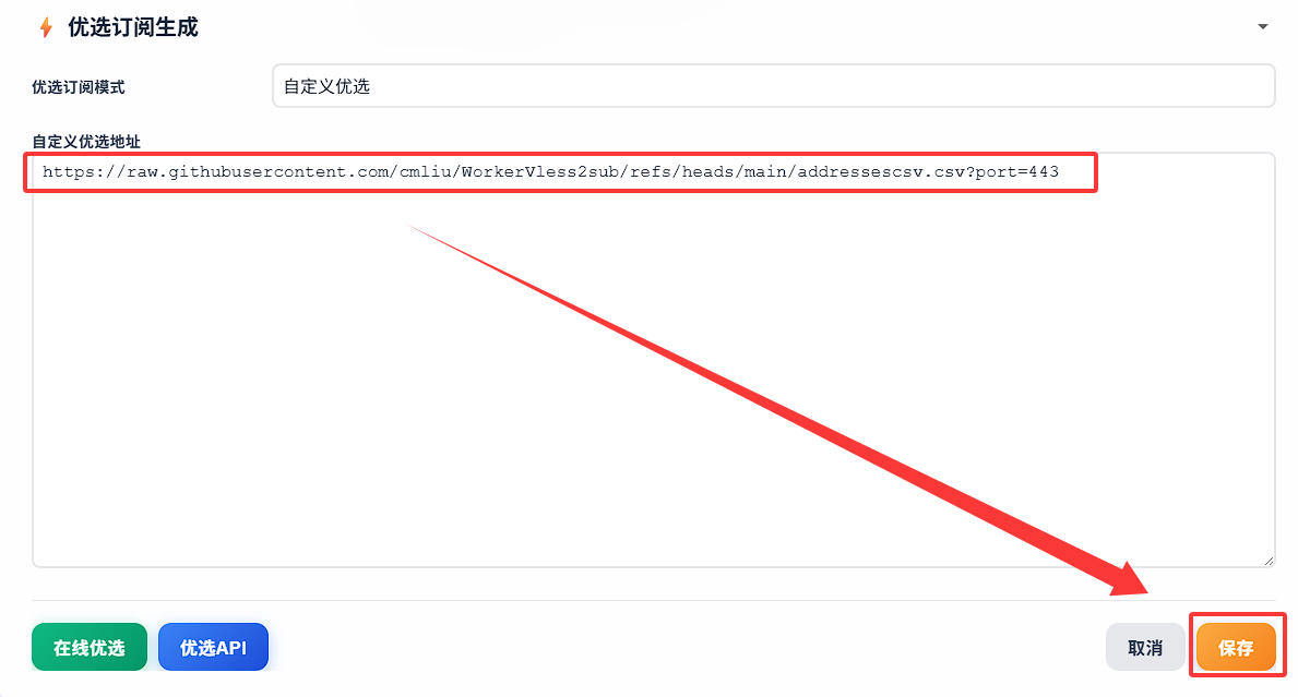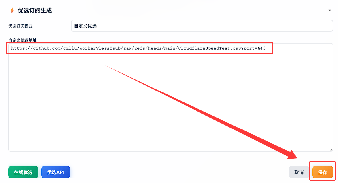 3. 填入优选订阅生成器,点击保存即可