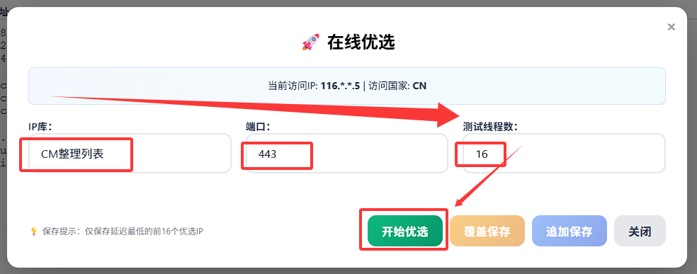 4. 内置三网优选IP,根据三网自动分配优选IP,优选IP想要多少就有多少!